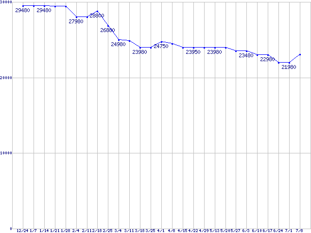 | Barracuda XT (7200rpm,6Gb/s)の最安値推移 |