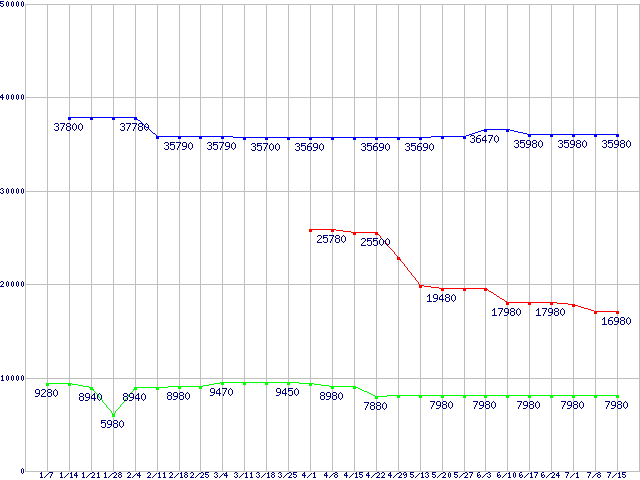 | HDD/SSD 30GB〜60GB未満の最安値推移 |