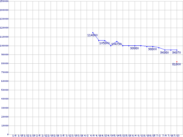 | CPU主要製品(最安値6万円以上)の最安値推移 |
