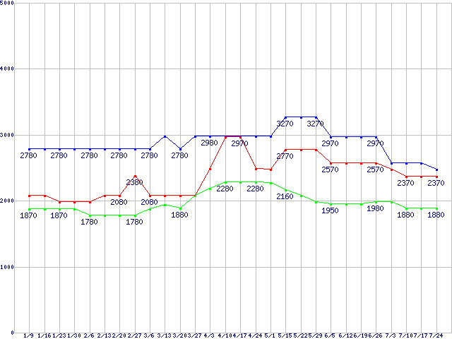 | ※製品名をクリックすると個別のグラフを表示します ※点線部は販売店が確認できなかった、または調査データがないことを示します | |