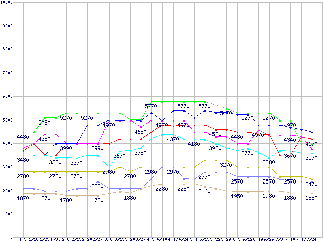 | ※製品名をクリックすると個別のグラフを表示します ※点線部は販売店が確認できなかった、または調査データがないことを示します | |