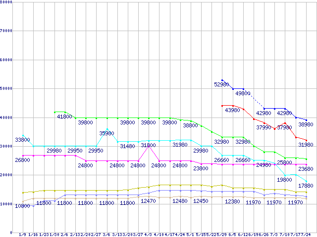| ※製品名をクリックすると個別のグラフを表示します ※点線部は販売店が確認できなかった、または調査データがないことを示します | |