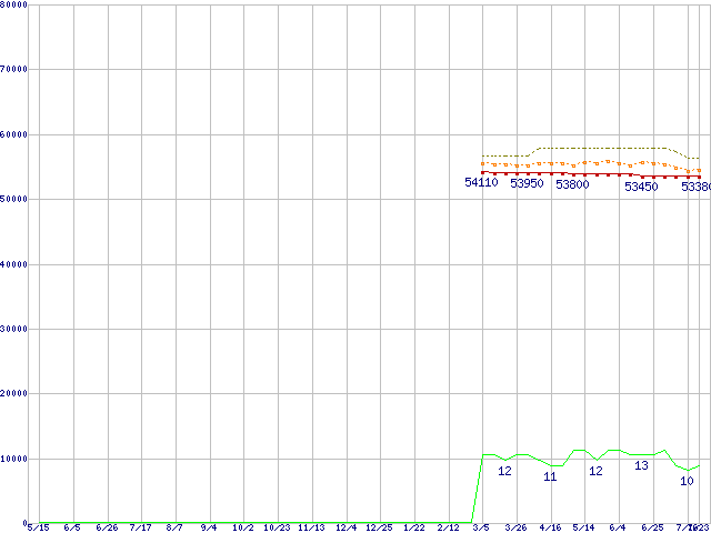 Core i7-960 (3.20GHz)の価格推移↑前グラフ↓次グラフ(2009年5月15日〜2010年7月23日)※このグラフは過去のデータも税率5%相当に調整した税込み相当額のグラフです。●関連グラフCPU主要製品の最安値推移CPU主要製品(最安値3万円〜6万円未満)の最安値推移Intel系CPUの最安値推移LGA1366 (QPI 4.8GT/s,L3キャッシュ8MB,Quad Core,Hyper-Threading,TDP 130W)の最安値推移●凡例最安値(点線部は販売店未確認または未調査)平均値最高値ショップ数