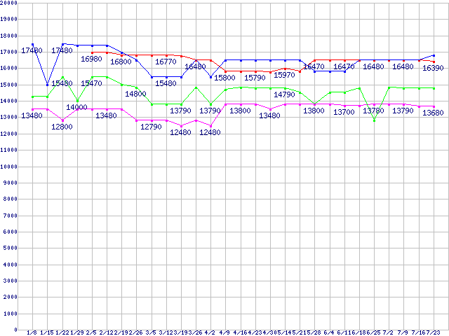 | Socket AM3 (HyperTransport 3.0,Quad Core)の最安値推移 |