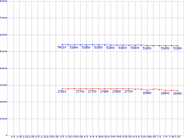 | LGA1366 (QPI 4.8GT/s,L3キャッシュ8MB,Quad Core,Hyper-Threading,TDP 130W)の最安値推移 |
