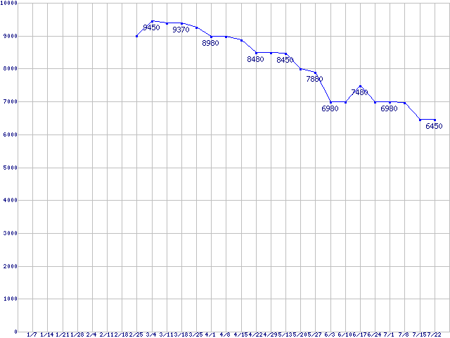 | Spinpoint M (5400rpm,3Gb/s,2.5インチ)の最安値推移 |