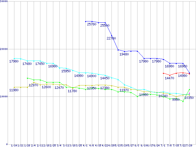 | ※製品名をクリックすると個別のグラフを表示します ※点線部は販売店が確認できなかった、または調査データがないことを示します | |