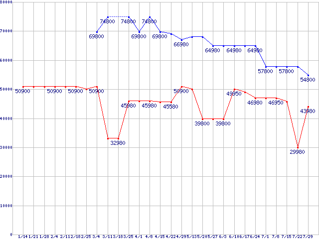 | ※製品名をクリックすると個別のグラフを表示します ※点線部は販売店が確認できなかった、または調査データがないことを示します |