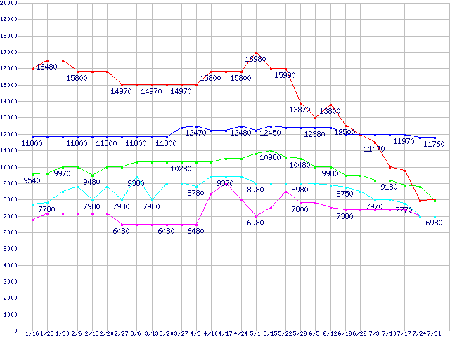 | ※製品名をクリックすると個別のグラフを表示します ※点線部は販売店が確認できなかった、または調査データがないことを示します | |
