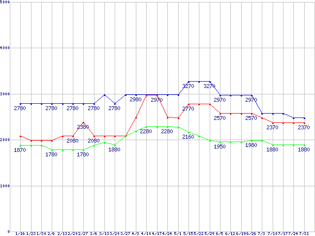 | ※製品名をクリックすると個別のグラフを表示します ※点線部は販売店が確認できなかった、または調査データがないことを示します | |
