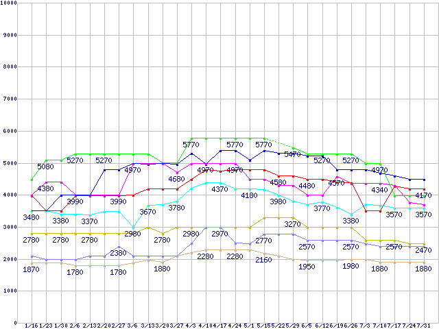 | ※製品名をクリックすると個別のグラフを表示します ※点線部は販売店が確認できなかった、または調査データがないことを示します | |
