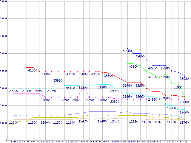 | ※製品名をクリックすると個別のグラフを表示します ※点線部は販売店が確認できなかった、または調査データがないことを示します | |