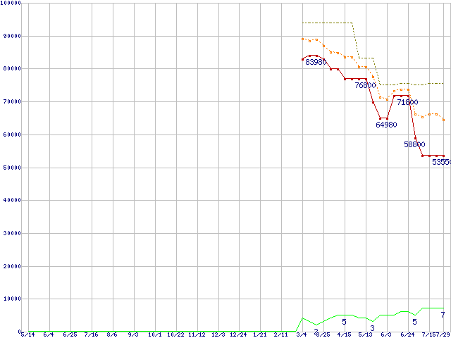| 2.5インチSSD(SandForce製コントローラ) (200〜240GB,MLC)の価格推移 |
