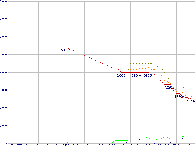 PC3-12800 4GB×2枚組みセットの価格推移↑前グラフ↓次グラフ(2009年5月16日〜2010年7月31日)※このグラフは過去のデータも税率5%相当に調整した税込み相当額のグラフです。 税率変更や、総額表示方式導入(2004年4月)の影響は除いています。●関連グラフメモリ主要製品の最安値推移メモリ主要製品(最安値1万円以上)の最安値推移PC3-12800(DDR3-1600) DDR3 SDRAM DIMMの最安値推移●凡例最安値(点線部は販売店未確認または未調査)平均値最高値ショップ数