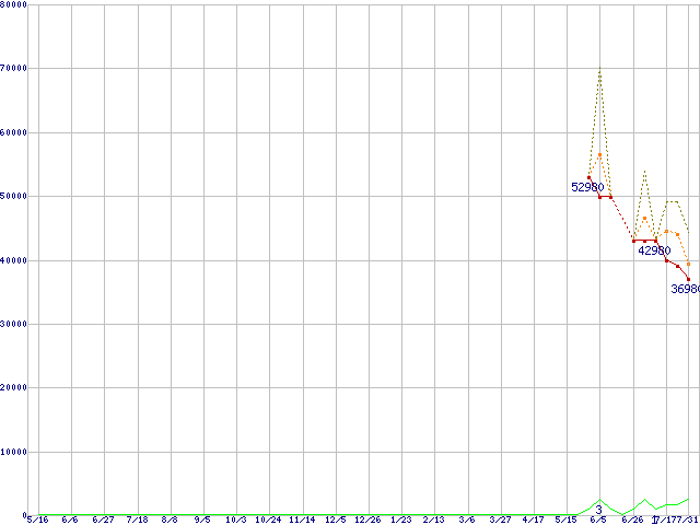 PC3-12800 4GB×3枚組みセットの価格推移↑前グラフ↓次グラフ(2009年5月16日〜2010年7月31日)※このグラフは過去のデータも税率5%相当に調整した税込み相当額のグラフです。 税率変更や、総額表示方式導入(2004年4月)の影響は除いています。●関連グラフメモリ主要製品の最安値推移メモリ主要製品(最安値1万円以上)の最安値推移PC3-12800(DDR3-1600) DDR3 SDRAM DIMMの最安値推移●凡例最安値(点線部は販売店未確認または未調査)平均値最高値ショップ数