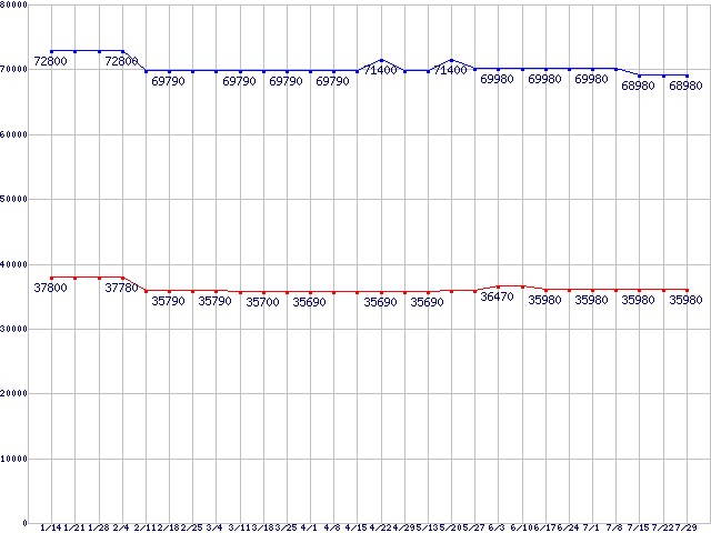 | X25-E Extreme SATA SSD (SSD,3Gbps,2.5インチ,SLC)の最安値推移 |