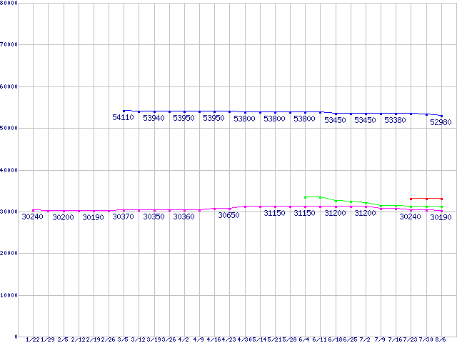 | CPU主要製品(最安値3万円〜6万円未満)の最安値推移 |
