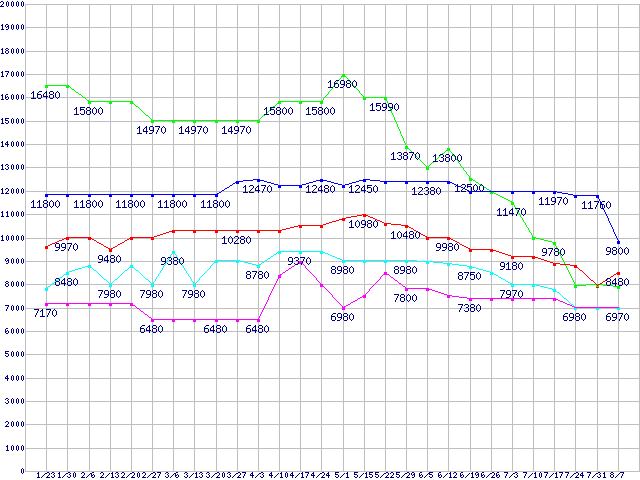| ※製品名をクリックすると個別のグラフを表示します ※点線部は販売店が確認できなかった、または調査データがないことを示します | |