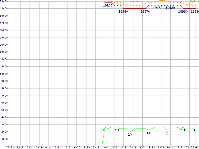 Core i5-661 (3.33GHz)の価格推移↑前グラフ↓次グラフ(2009年5月22日〜2010年8月6日)※このグラフは過去のデータも税率5%相当に調整した税込み相当額のグラフです。●関連グラフCPU主要製品の最安値推移CPU主要製品(最安値1万円〜2万円未満)の最安値推移Intel系CPUの最安値推移LGA1156 (L3キャッシュ4MB,Dual Core,GPU内蔵,Hyper-Threading,TDP 73〜87W)の最安値推移●凡例最安値(点線部は販売店未確認または未調査)平均値最高値ショップ数