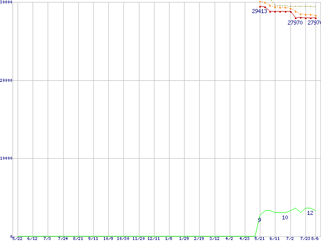Core i5-680 (3.6GHz)の価格推移↑前グラフ↓次グラフ(2009年5月22日〜2010年8月6日)※このグラフは過去のデータも税率5%相当に調整した税込み相当額のグラフです。●関連グラフCPU主要製品の最安値推移CPU主要製品(最安値2万円〜3万円未満)の最安値推移Intel系CPUの最安値推移LGA1156 (L3キャッシュ4MB,Dual Core,GPU内蔵,Hyper-Threading,TDP 73〜87W)の最安値推移●凡例最安値(点線部は販売店未確認または未調査)平均値最高値ショップ数