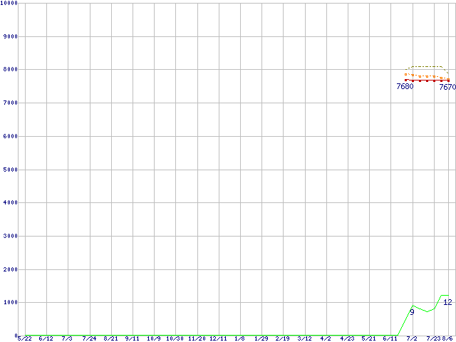Athlon II X2 245e (2.9GHz,L2 1MB×2,TDP 45W)の価格推移↑前グラフ↓次グラフ(2009年5月22日〜2010年8月6日)※このグラフは過去のデータも税率5%相当に調整した税込み相当額のグラフです。●関連グラフCPU主要製品の最安値推移CPU主要製品(最安値1万円未満)の最安値推移AMD系CPUの最安値推移Socket AM3 (Dual Core)の最安値推移●凡例最安値(点線部は販売店未確認または未調査)平均値最高値ショップ数