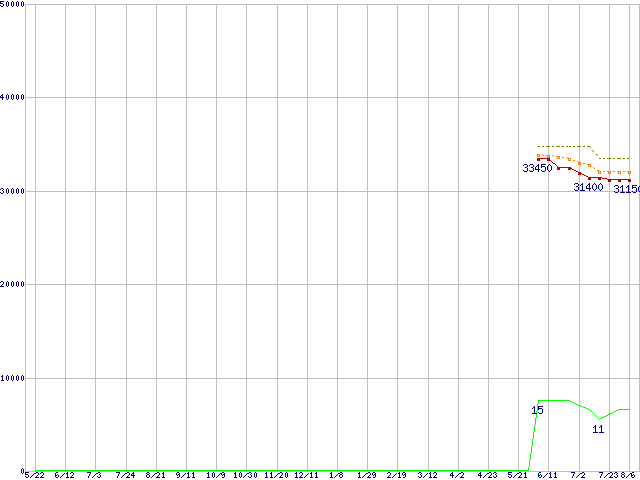 Core i7-875K (2.93GHz)の価格推移↑前グラフ↓次グラフ(2009年5月22日〜2010年8月6日)※このグラフは過去のデータも税率5%相当に調整した税込み相当額のグラフです。●関連グラフCPU主要製品の最安値推移CPU主要製品(最安値3万円〜6万円未満)の最安値推移Intel系CPUの最安値推移LGA1156 (L3キャッシュ8MB,Quad Core,Hyper-Threading,TDP 82〜95W)の最安値推移●凡例最安値(点線部は販売店未確認または未調査)平均値最高値ショップ数
