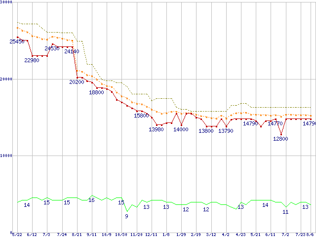 | Phenom II X4 955 Black Edition (3.2GHz,L2 512KB×4,L3 6MB,TDP 125W)の価格推移 |