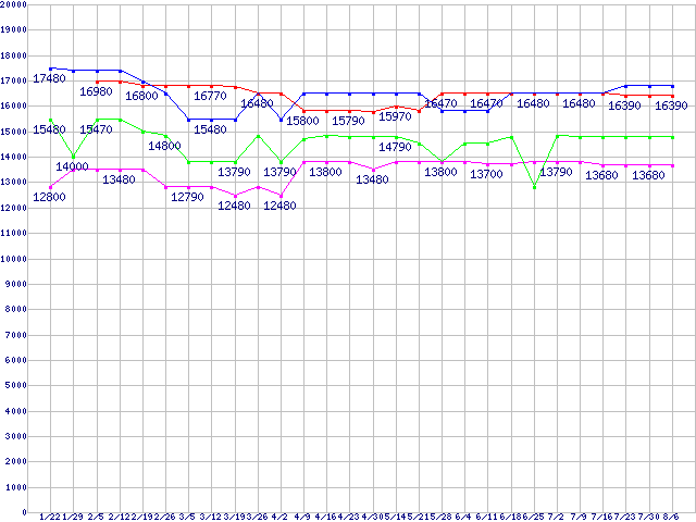 | Socket AM3 (HyperTransport 3.0,Quad Core)の最安値推移 |