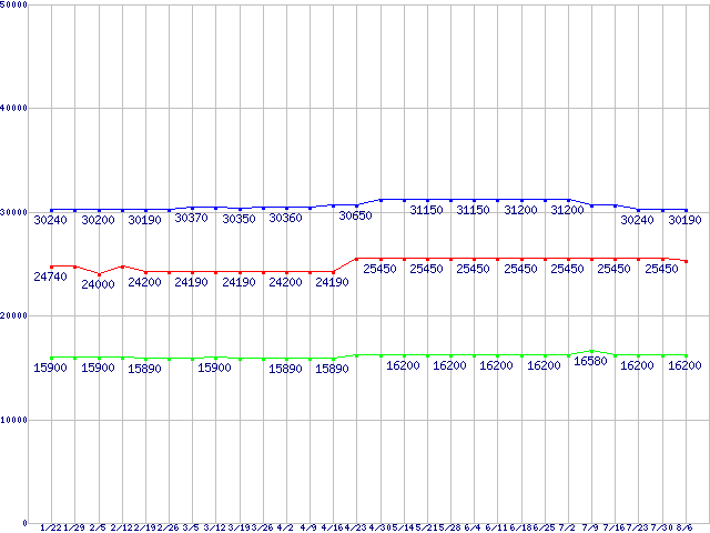| LGA775 (FSB 1333MHz,Quad Core,TDP 95W)の最安値推移 |