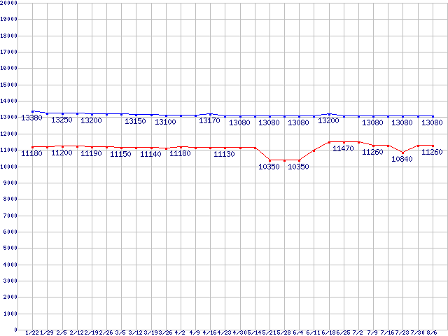 | LGA775 (FSB 1066MHz,Dual Core,TDP 65W)の最安値推移 |