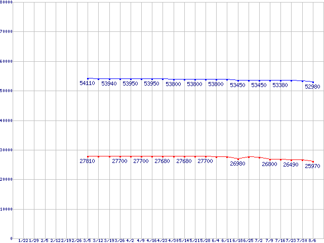 | LGA1366 (QPI 4.8GT/s,L3キャッシュ8MB,Quad Core,Hyper-Threading,TDP 130W)の最安値推移 |