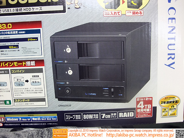 AKIBA PC Hotline! 2010年8月7日号今週見つけた新製品:リムーバブルHDDケース/外付けケースほか センチュリー 裸族の二世帯住宅USB3.0(CRNS35U3)[記事に戻る]→次の画像