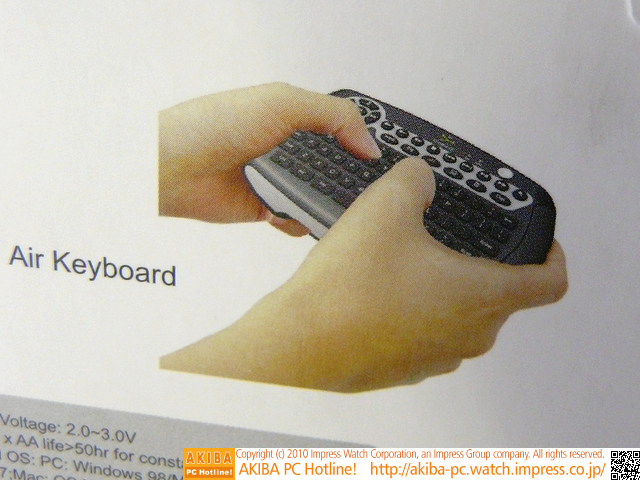AKIBA PC Hotline! 2010年8月7日号本体を動かしてマウスを操作、ユニークな両手持ちキーボードが発売に今週見つけた新製品:入力デバイス cideko Air Keyboard前の画像←→次の画像