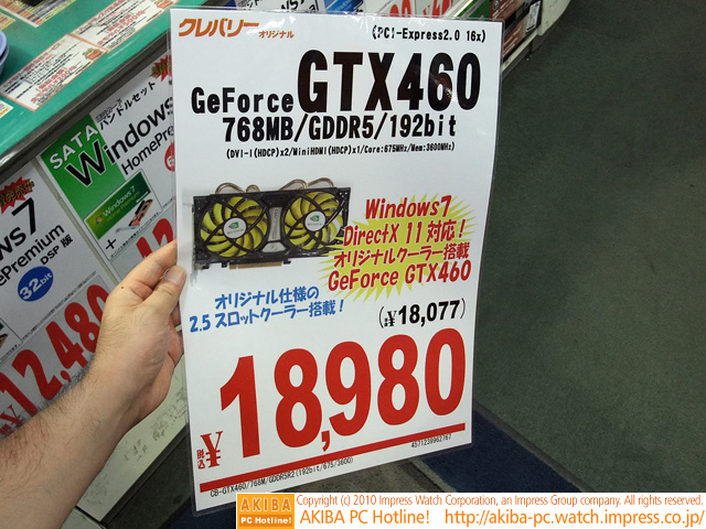 AKIBA PC Hotline! 2010年8月14日号今週見つけた新製品:ビデオカード クレバリー CB-GTX460/768M/GDDR5R2(192bit/675/3600)前の画像←[記事に戻る]