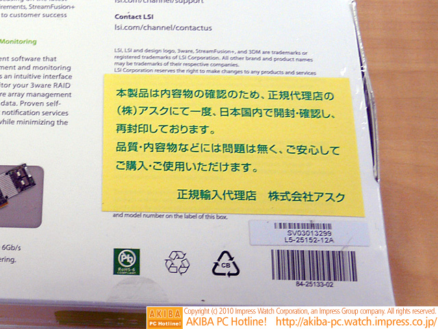 ![]() | AKIBA PC Hotline! 2010年8月14日号 今週見つけた新製品:そのほかの拡張カード LSI 3ware SAS 9750-4i4e Single Pack LSI 3ware SAS 9750-4i4e Kit with Cables LSI 3ware SAS 9750-8e Single Pack LSI 3ware SAS 9750-8e Kit with Cables |