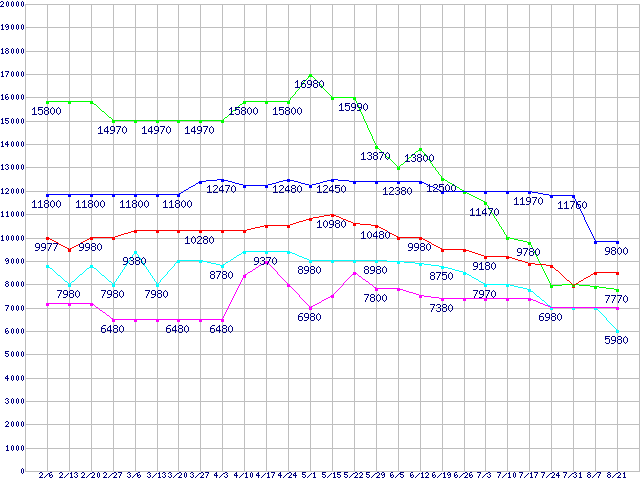 | ※製品名をクリックすると個別のグラフを表示します ※点線部は販売店が確認できなかった、または調査データがないことを示します | |