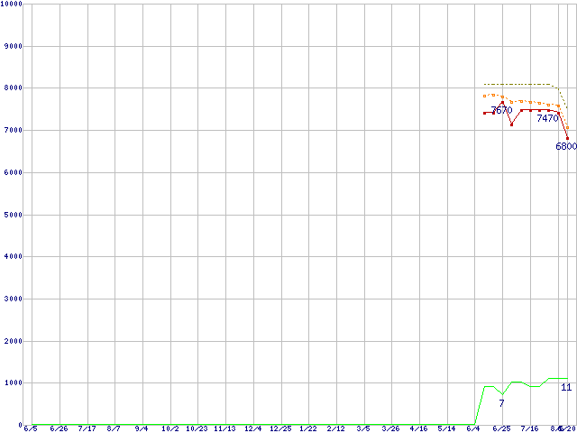Athlon II X2 260 (3.2GHz,L2 1MB×2,TDP 65W)の価格推移↑前グラフ↓次グラフ(2009年6月5日〜2010年8月20日)※このグラフは過去のデータも税率5%相当に調整した税込み相当額のグラフです。●関連グラフCPU主要製品の最安値推移CPU主要製品(最安値1万円未満)の最安値推移AMD系CPUの最安値推移Socket AM3 (Dual Core)の最安値推移●凡例最安値(点線部は販売店未確認または未調査)平均値最高値ショップ数