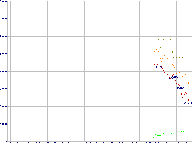 PC3-10600 4GB×3枚組みセットの価格推移↑前グラフ↓次グラフ(2009年6月6日〜2010年8月21日)※このグラフは過去のデータも税率5%相当に調整した税込み相当額のグラフです。 税率変更や、総額表示方式導入(2004年4月)の影響は除いています。●関連グラフメモリ主要製品の最安値推移メモリ主要製品(最安値1万円以上)の最安値推移PC3-10600(DDR3-1333) DDR3 SDRAM DIMMの最安値推移●凡例最安値(点線部は販売店未確認または未調査)平均値最高値ショップ数