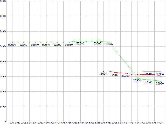 | LGA1156 (L3キャッシュ8MB,Quad Core,Hyper-Threading,TDP 82〜95W)の最安値推移 |