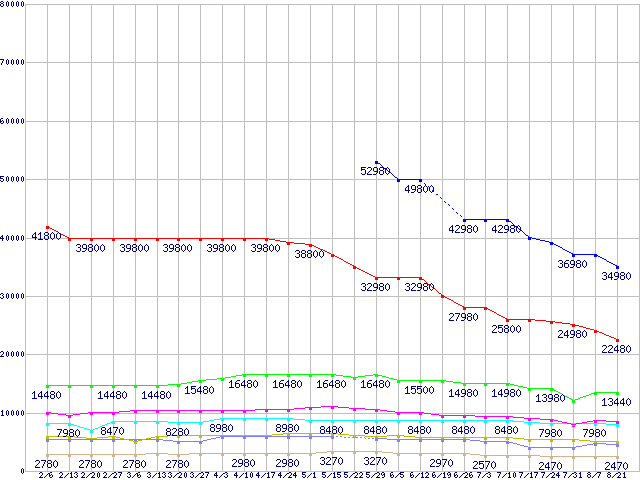 | ※製品名をクリックすると個別のグラフを表示します ※点線部は販売店が確認できなかった、または調査データがないことを示します | |