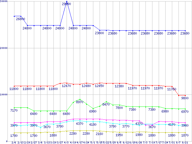 | ※製品名をクリックすると個別のグラフを表示します ※点線部は販売店が確認できなかった、または調査データがないことを示します | |