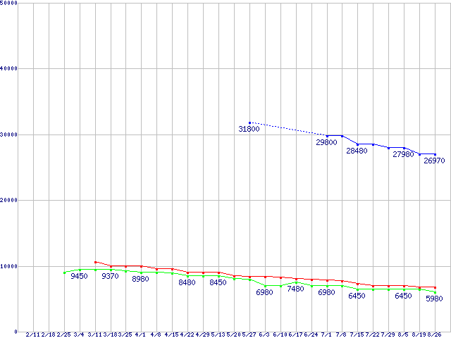 | ※製品名をクリックすると個別のグラフを表示します ※点線部は販売店が確認できなかった、または調査データがないことを示します | |