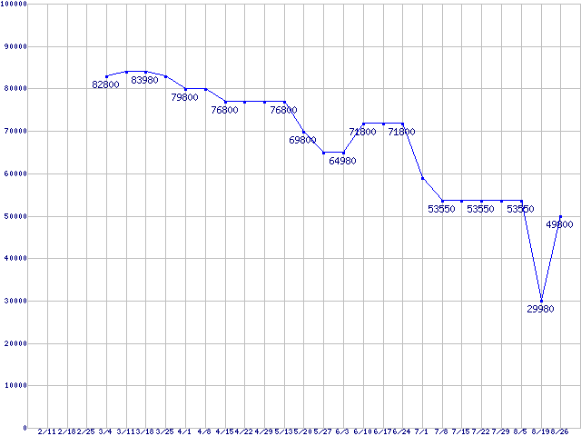 | HDD 200〜250GB未満の最安値推移 |