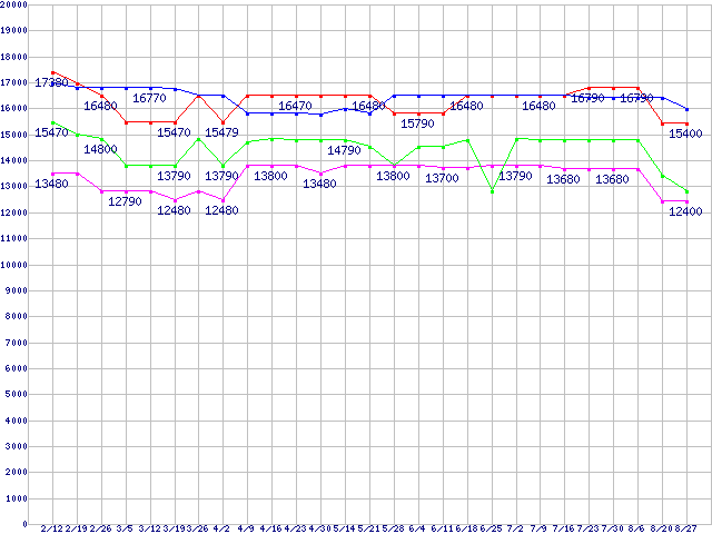 | Socket AM3 (HyperTransport 3.0,Quad Core)の最安値推移 |