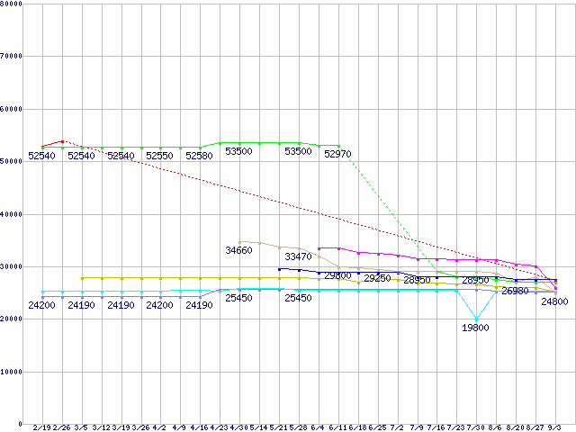| ※製品名をクリックすると個別のグラフを表示します ※点線部は販売店が確認できなかった、または調査データがないことを示します | |