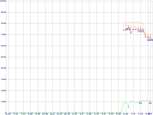 Athlon II X2 260 (3.2GHz,L2 1MB×2,TDP 65W)の価格推移↑前グラフ↓次グラフ(2009年6月19日〜2010年9月3日)※このグラフは過去のデータも税率5%相当に調整した税込み相当額のグラフです。●関連グラフCPU主要製品の最安値推移CPU主要製品(最安値1万円未満)の最安値推移AMD系CPUの最安値推移Socket AM3 (Dual Core)の最安値推移●凡例最安値(点線部は販売店未確認または未調査)平均値最高値ショップ数