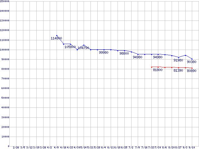 | CPU主要製品(最安値6万円以上)の最安値推移 |