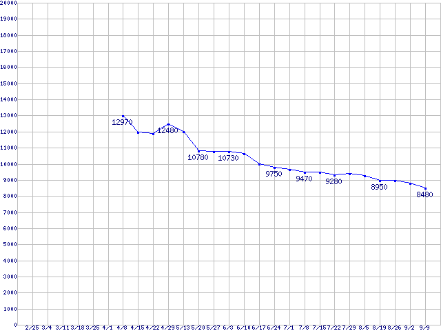 | HDD 750GB〜1TB未満の最安値推移 |