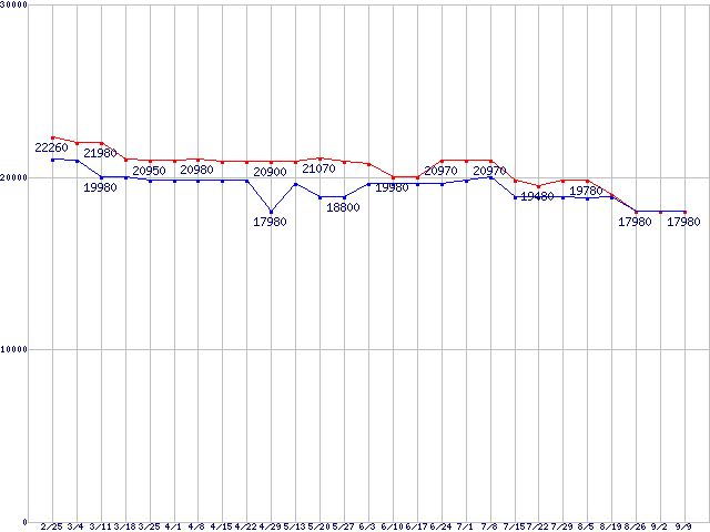 | ※製品名をクリックすると個別のグラフを表示します ※点線部は販売店が確認できなかった、または調査データがないことを示します |