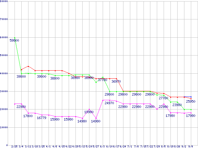 | HDD 100〜160GB未満の最安値推移 |